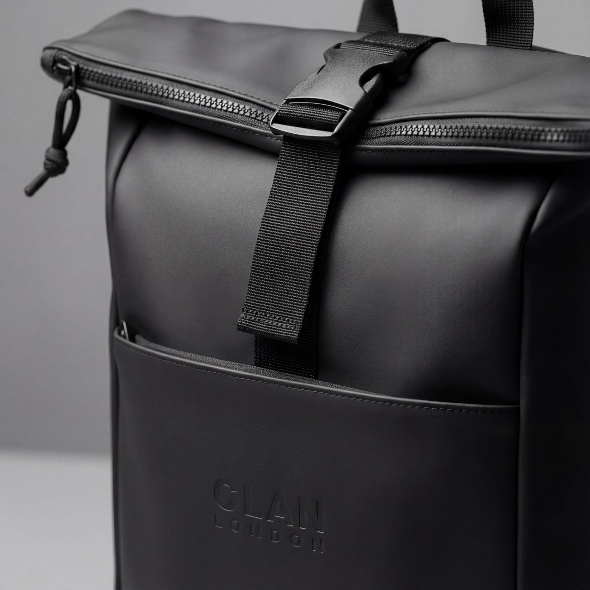 A slim, structured roll-top backpack crafted from smooth matte PU. Weather-ready, modern and engineered to protect your tech and essentials without adding bulk.